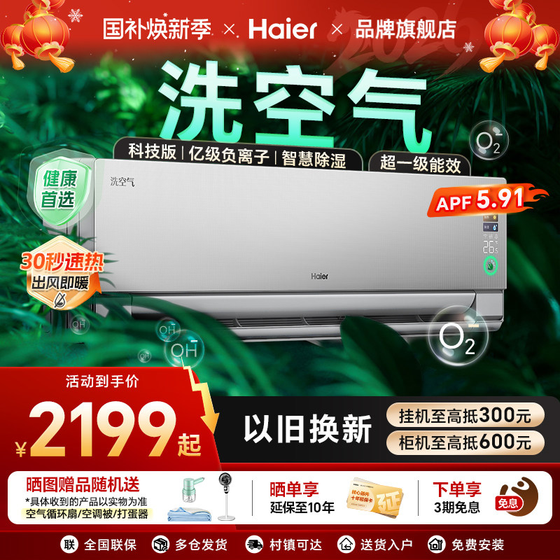 【国补8折】海尔空调1.5匹家用一级能效变频卧室挂机冷暖E1旗舰店