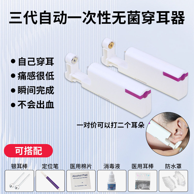打耳洞神器三代专业一次性无痛穿耳器扎耳眼钛钢耳钉自动无菌耳枪