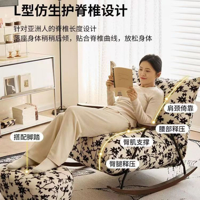 沙发法式意式水墨单人摇椅客厅阳台懒人躺椅家用复古休闲摇摇椅