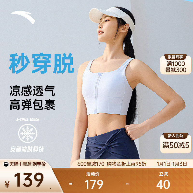 安踏易穿脱运动内衣|冰丝一体式高强度健身女瑜伽背心运动文胸bra