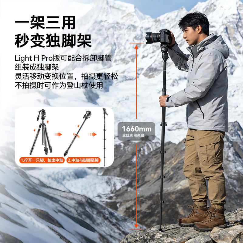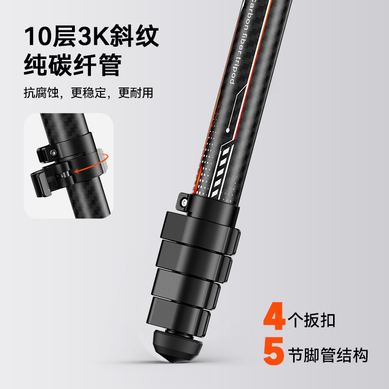 【轻量碳纤】科漫Light超轻全碳纤维专业相机三脚架单反支架便携摄影摄像液压球型一体双云台三角架旅行拍照