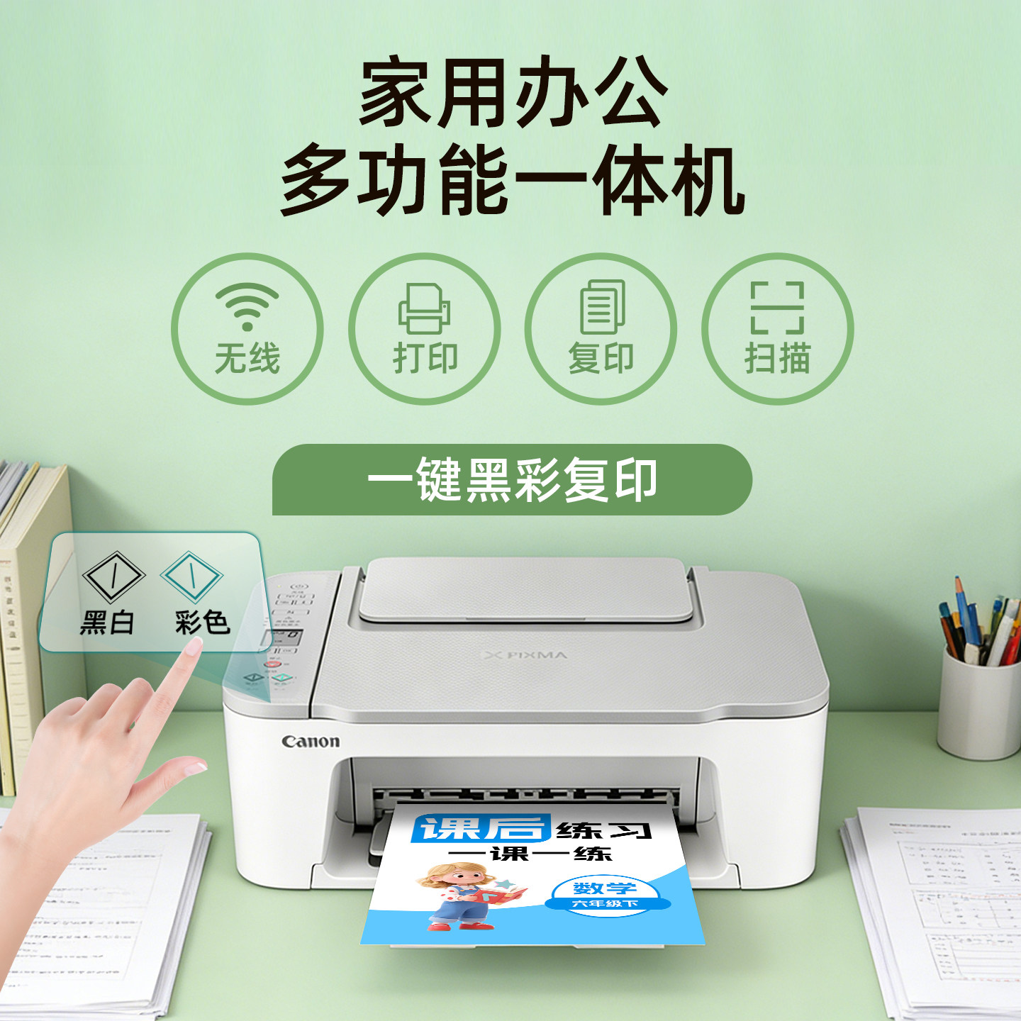 佳能TS3480彩色家用小型打印机可连手机无线wifi喷墨复印扫描一体机2580学生照片家庭办公专用MG3680自动双面