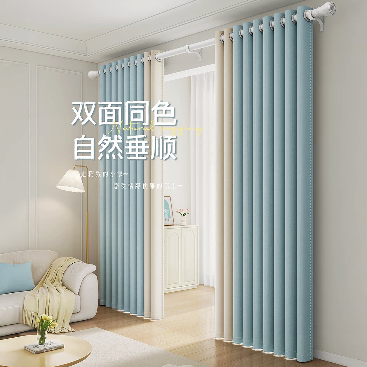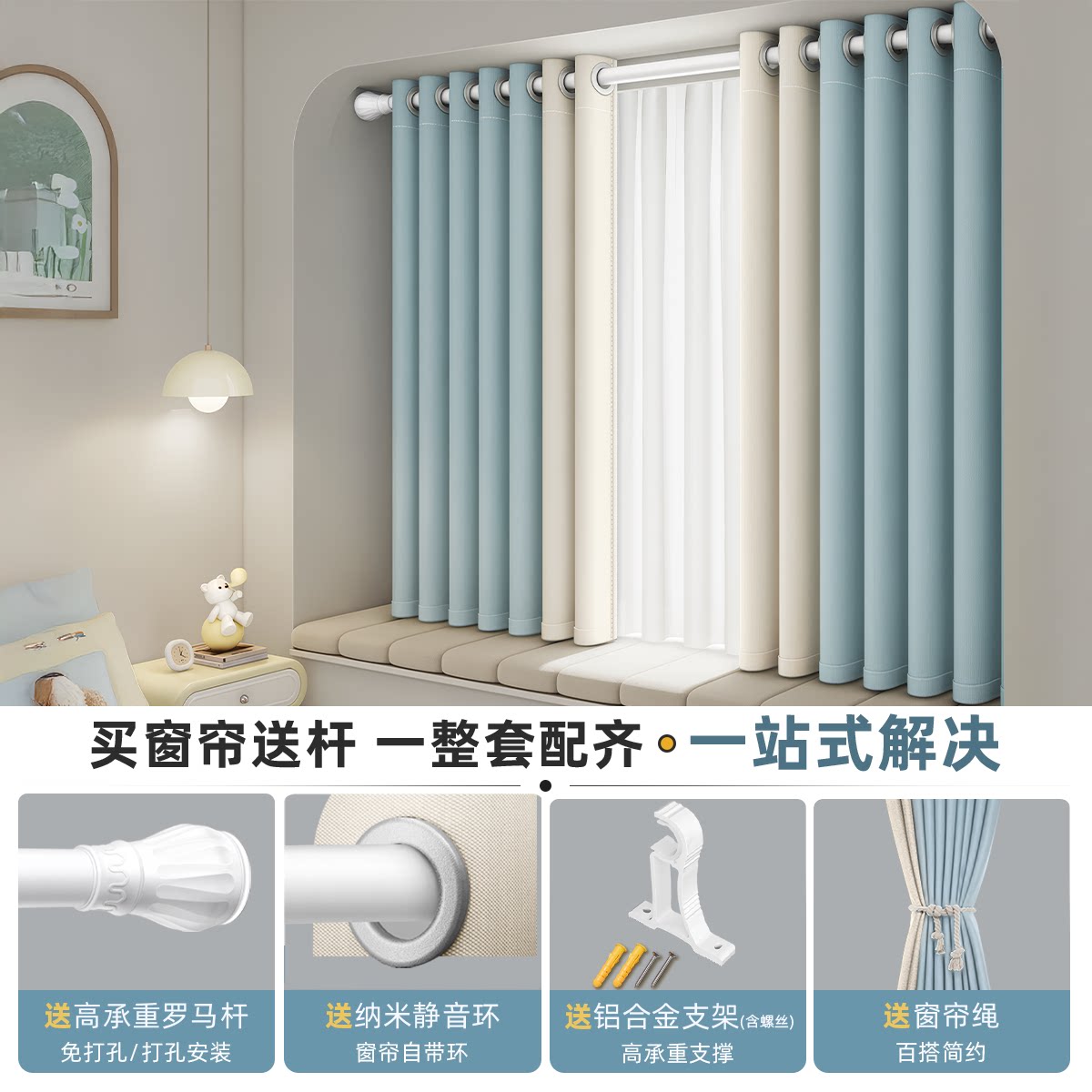 窗帘遮光2026新款卧室高级感免打孔安装一整套罗马杆飘窗小窗户布