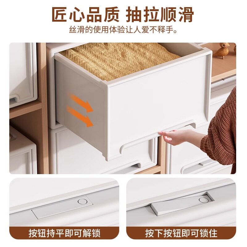 收纳箱抽屉式塑料家用衣服透明衣柜收纳盒衣物储物柜子整理箱