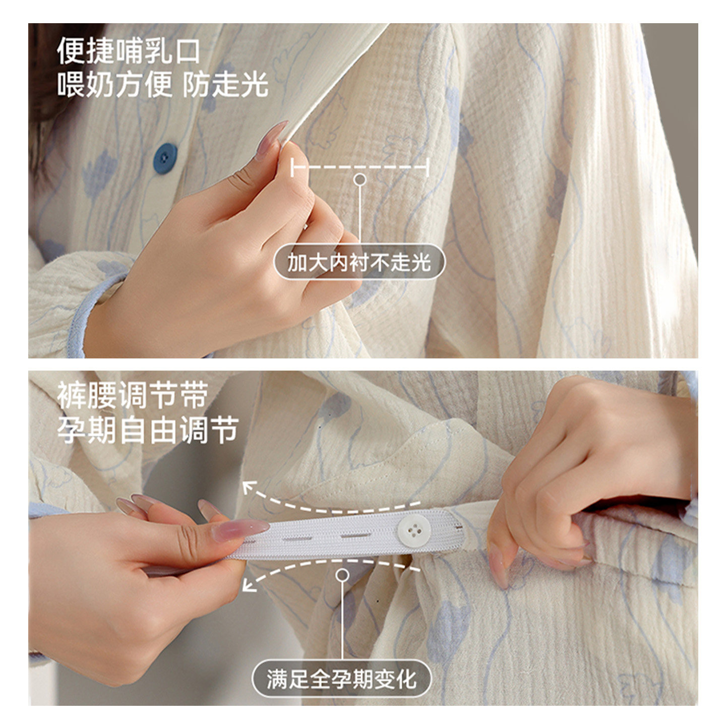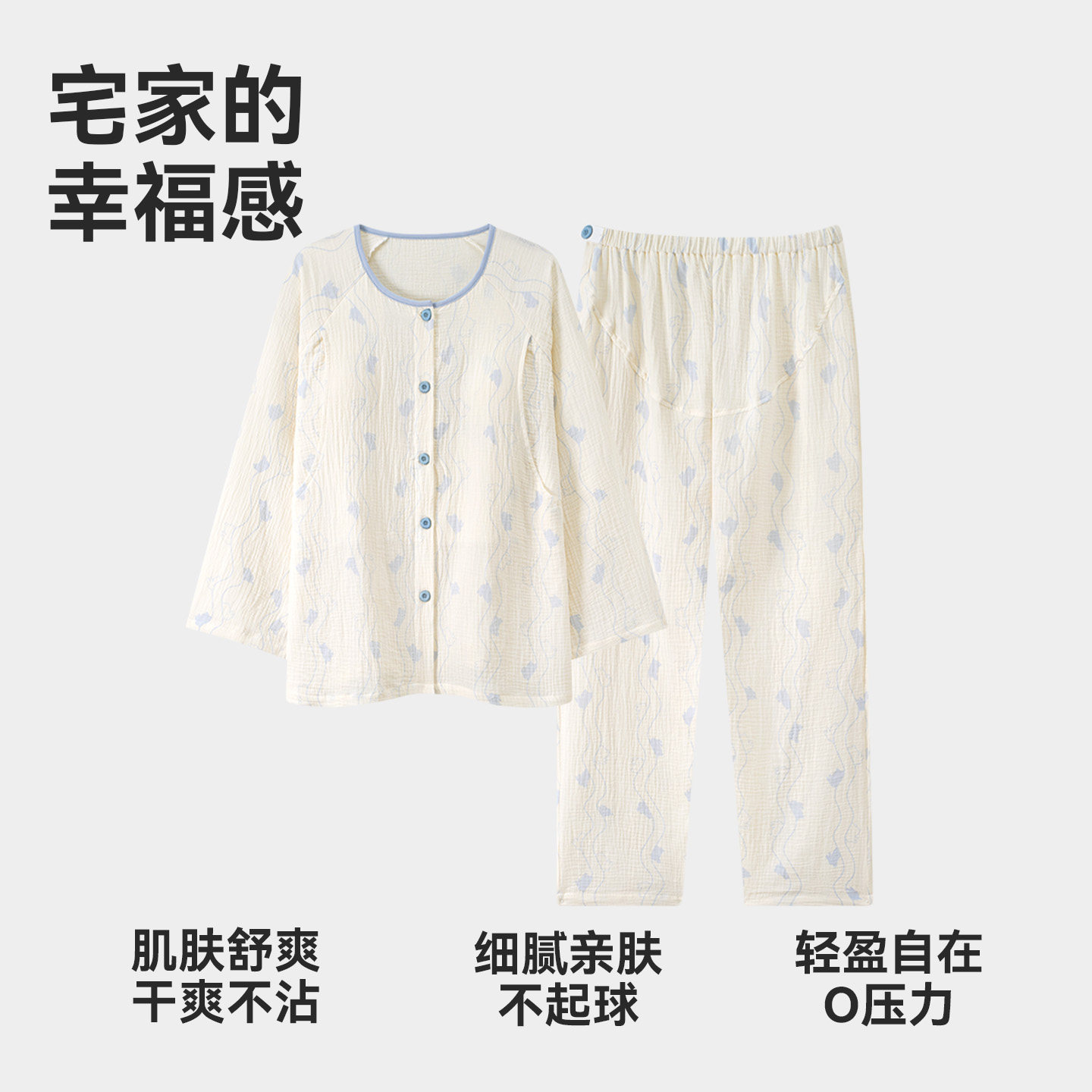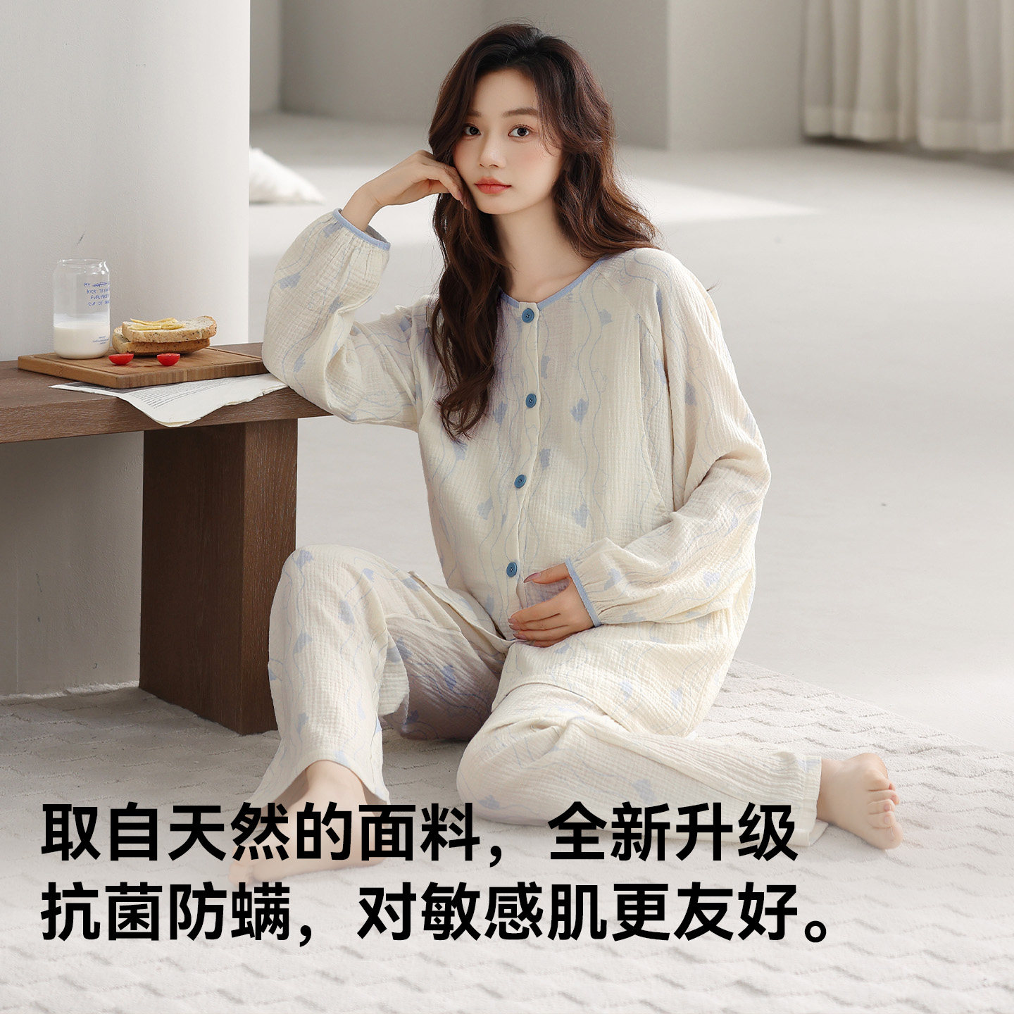 猫人2026新款A类纯棉双层纱孕妇睡衣女春秋哺乳月子服家居服套装