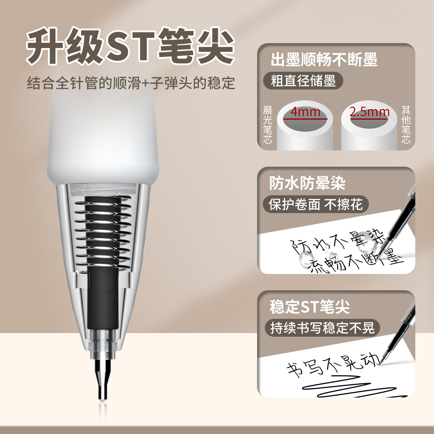晨光PET按动笔芯k35中性笔笔芯ST按压式黑色0.5mm全针管子弹头按动签字GP1008水笔芯替换芯学生考试用小霸王