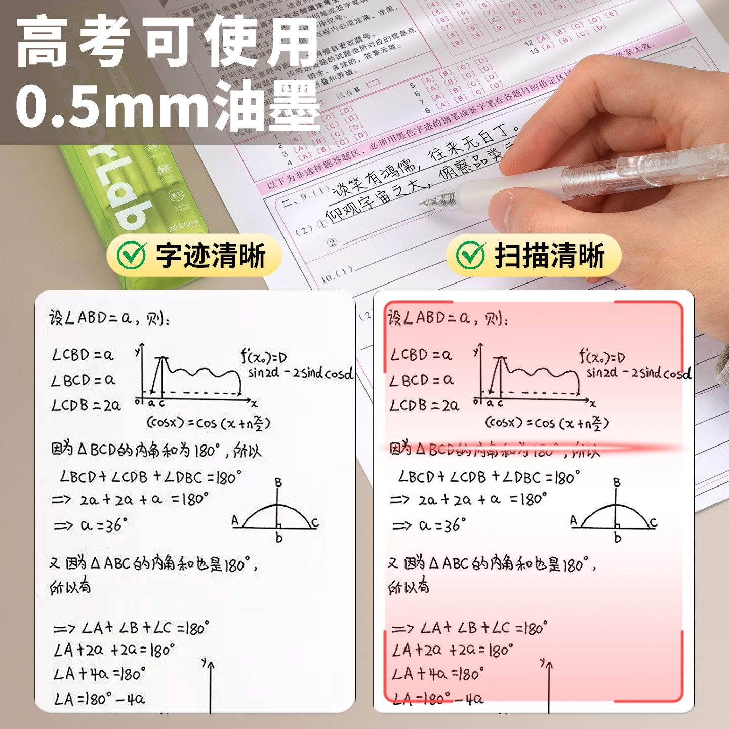 得力刷题笔速干st头透明考试笔考研考公学生用文具黑色0.5刷题备考专用笔中高考高颜中性笔碳素考按动式透明