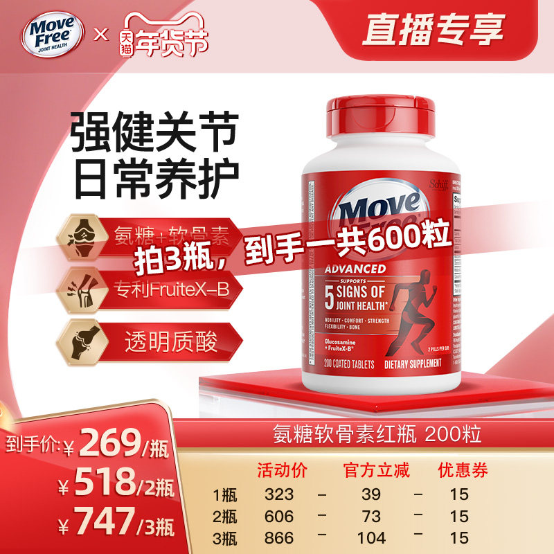 【直播超值年货节!】益节movefree氨糖软骨素红瓶护关节200粒