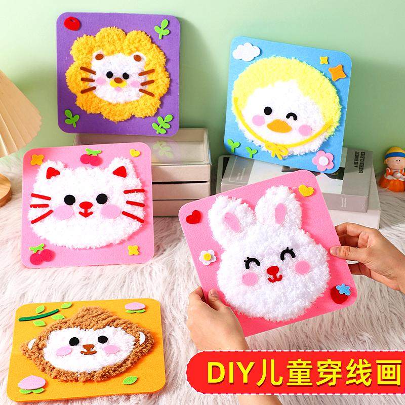儿童缝缝戳戳乐刺绣画卡通毛线穿线画手工制作diy材料包玩具礼物