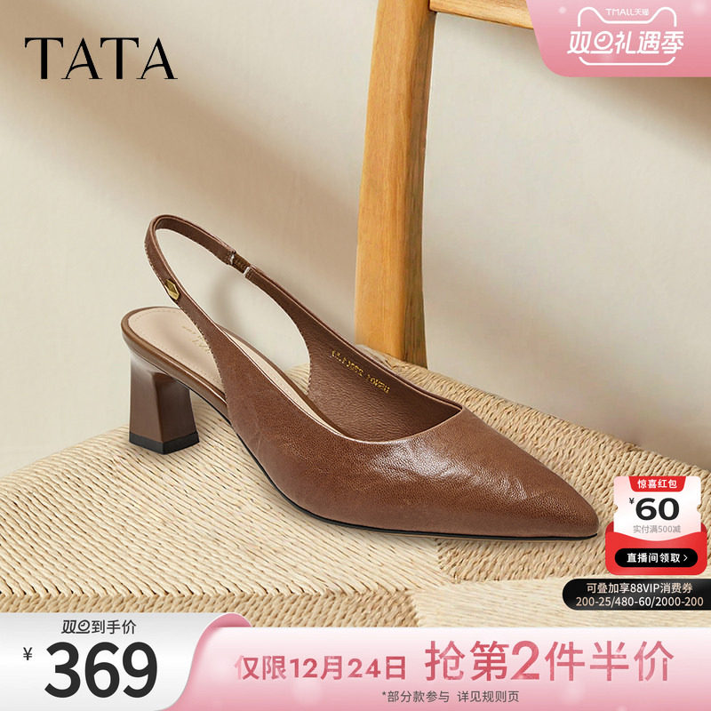 TATA他她复古高跟鞋包头凉鞋女羊皮粗跟单鞋2025夏季新款USN01BH5