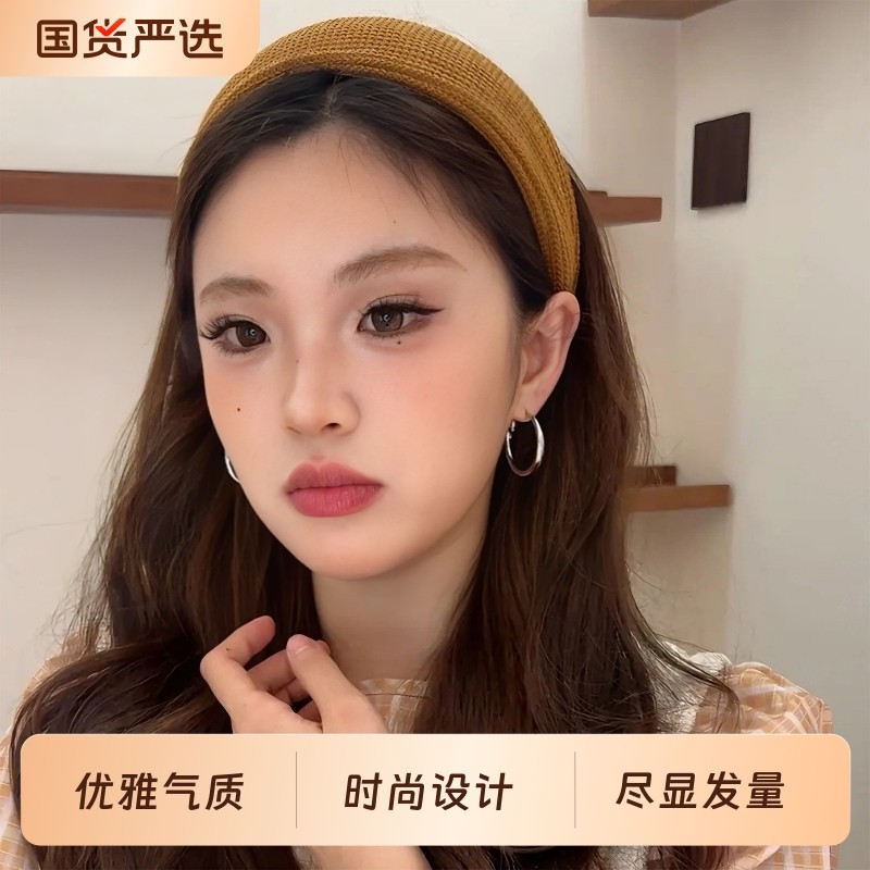 秋冬港风复古毛线针织宽边发箍女款2025新款高颅顶头箍发卡头饰