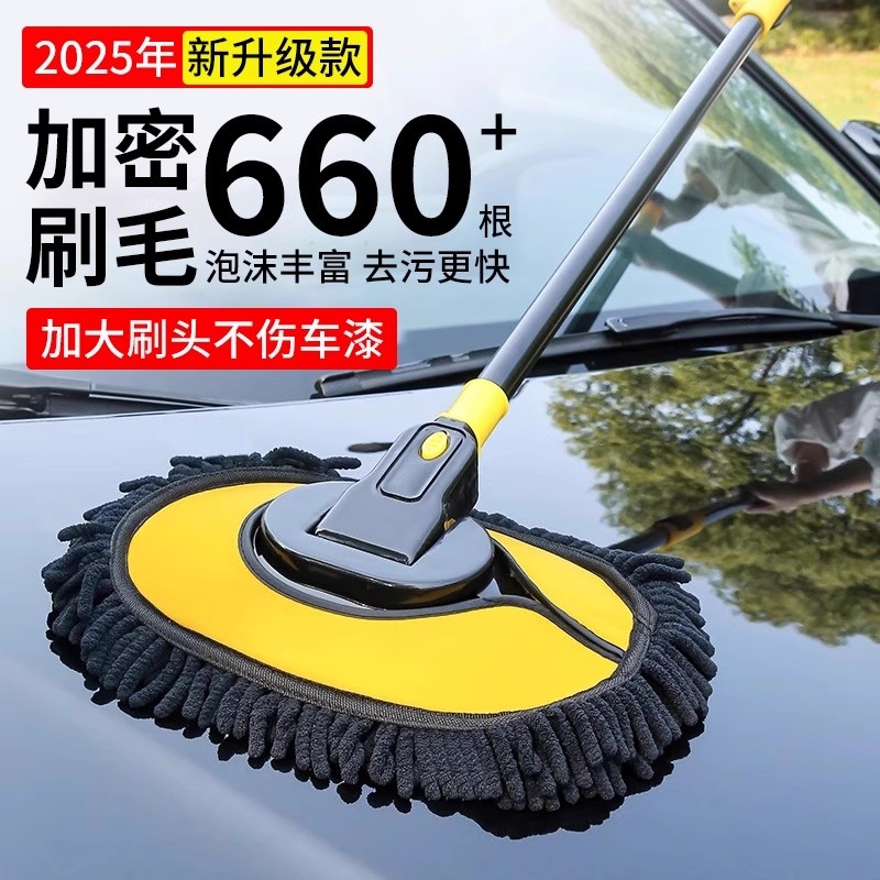 洗车拖把专用不伤车漆伸缩软毛车用弯杆汽车刷子除尘掸子全套工具