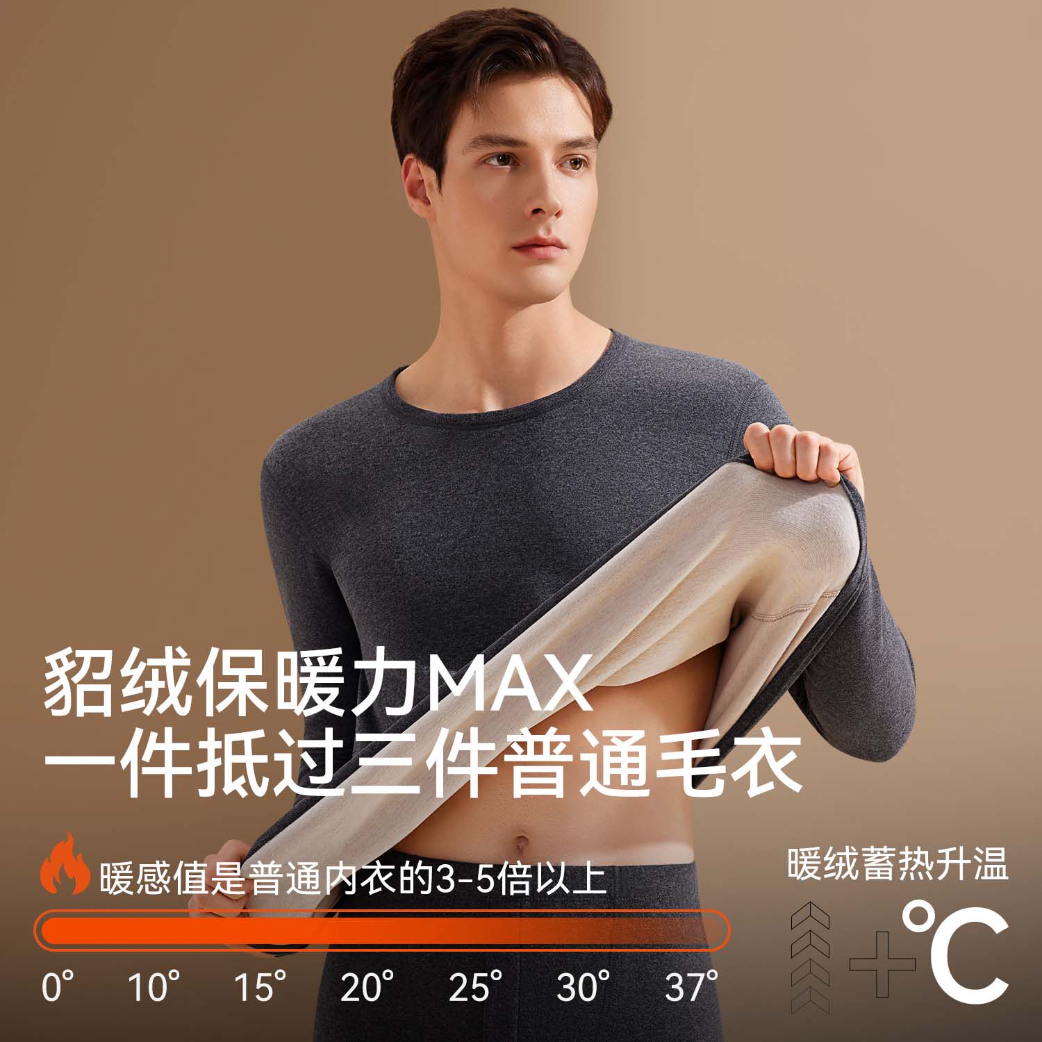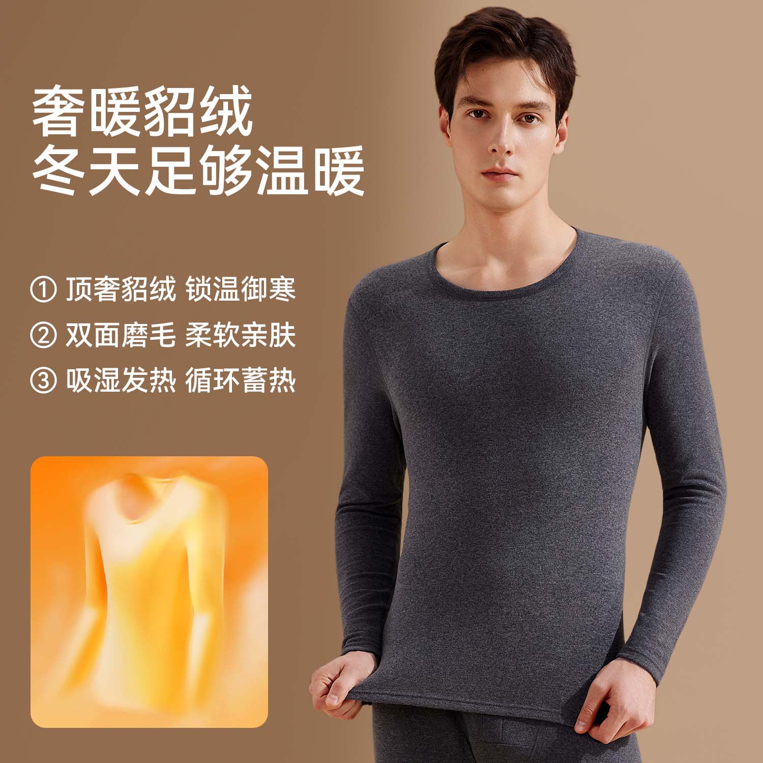 都市丽人保暖内衣套装男士加绒加厚秋衣秋裤貂绒发热打底抗菌冬季
