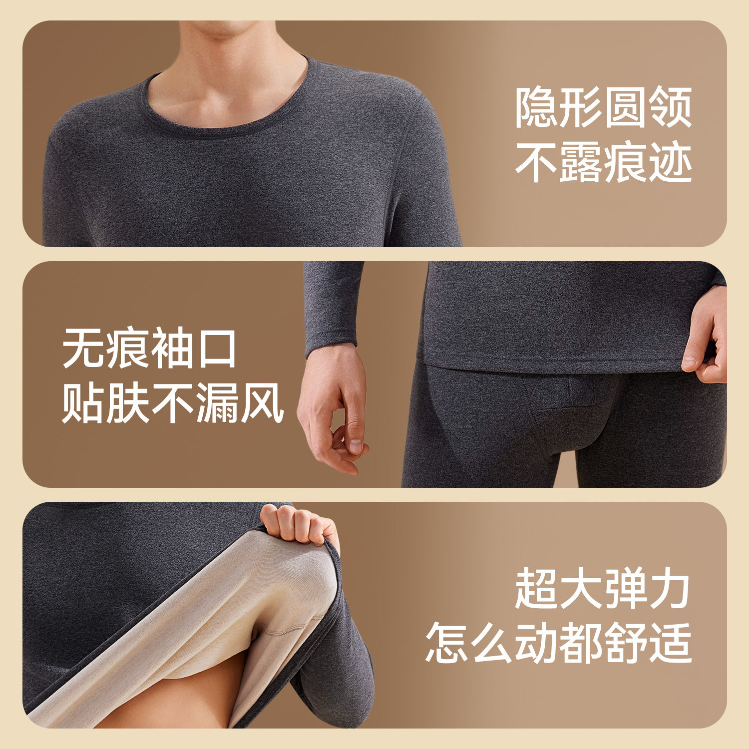 兰帕媛无痕保暖内衣套装双面磨毛绒羊毛蚕丝紧身男女士大人冬季6