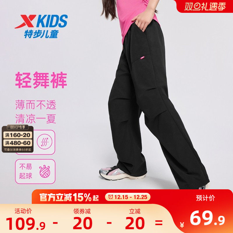 特步童装女童速干伞兵裤儿童运动裤2025秋冬新款大童裤子冬装长裤