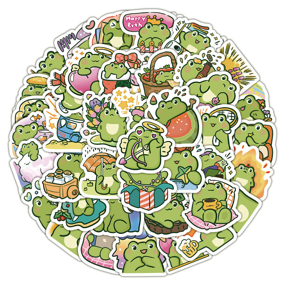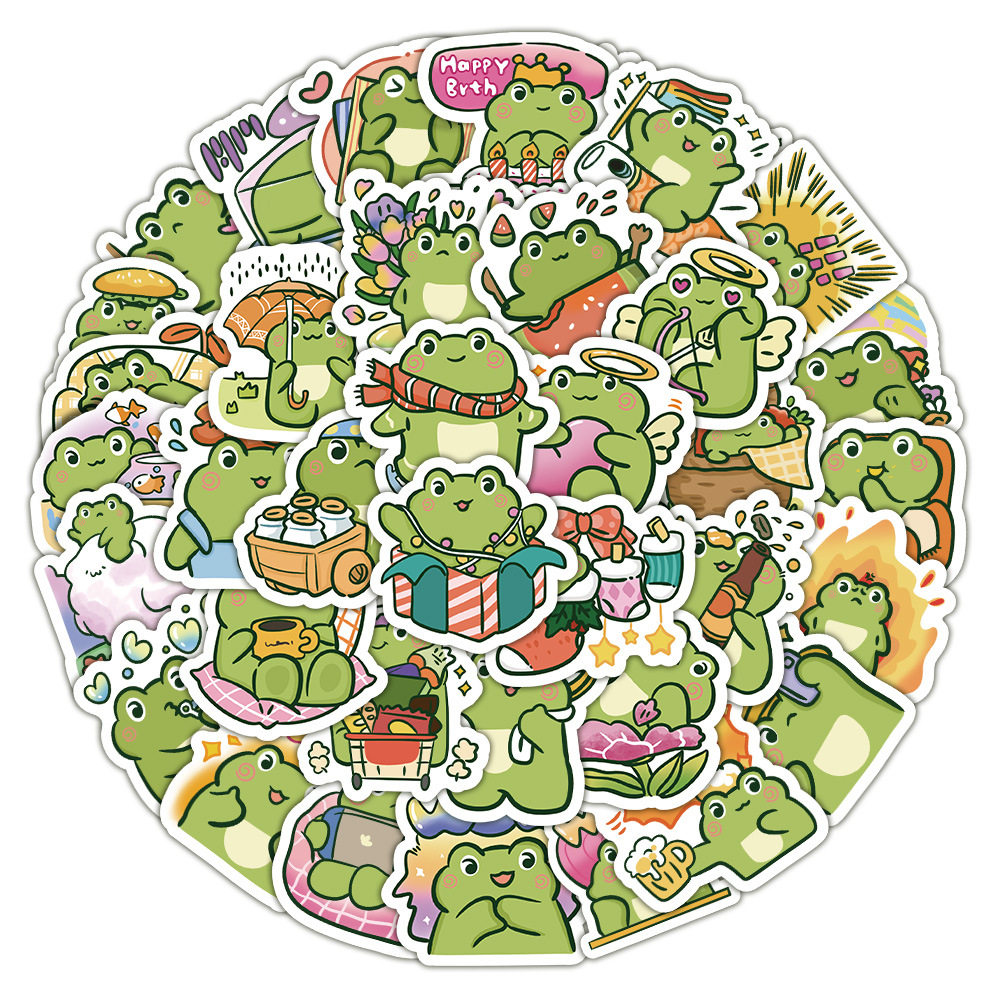 50张卡通可爱瞪眼蛙清新ins贴纸装饰行李箱滑板车防水贴画