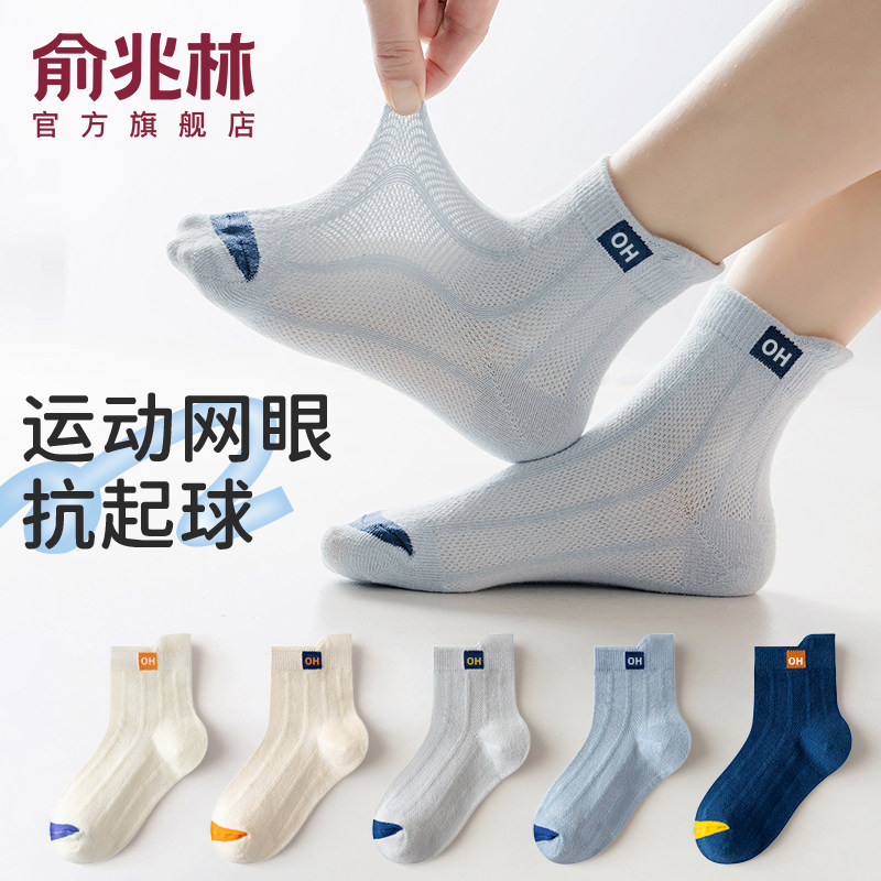 男童袜子春秋款纯棉青少年吸汗防臭运动袜男孩学生中筒网眼袜儿童