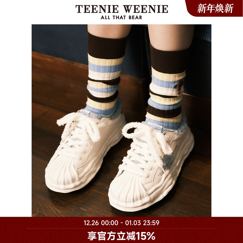 TeenieWeenie小熊奥莱秋季Y2K星星鞋彩色毛绒保暖板鞋时尚