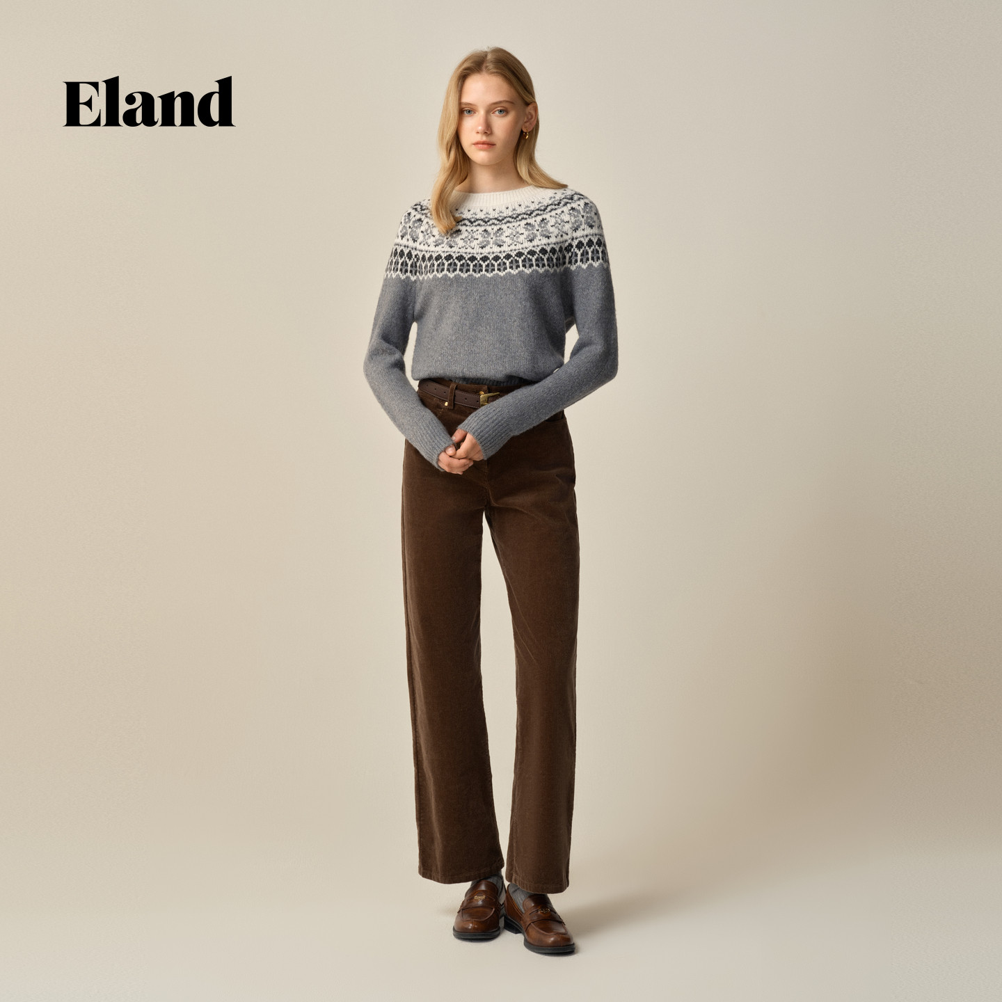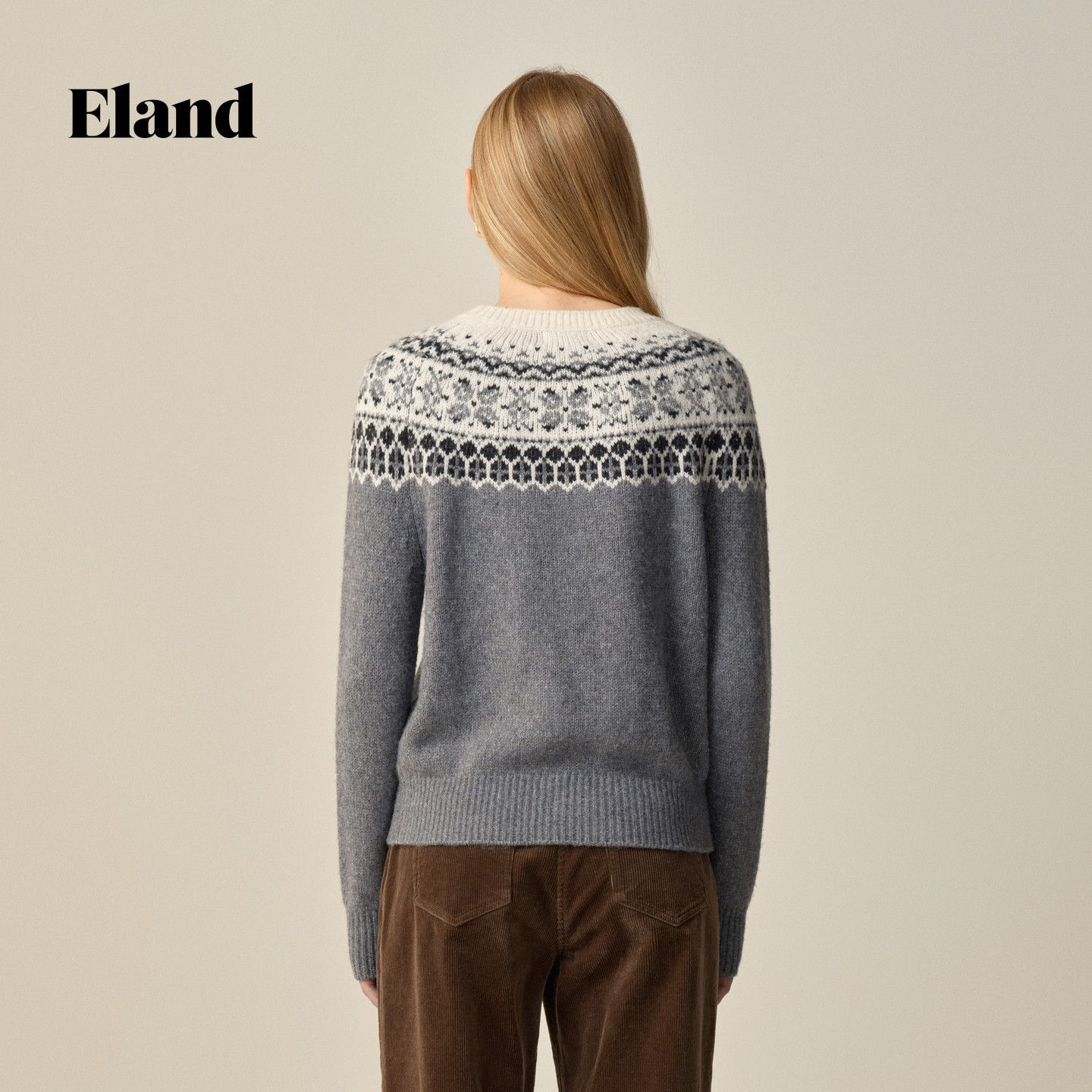 【绵羊毛+马海毛】Eland衣恋毛衣女提花费尔岛针织衫2025冬新款