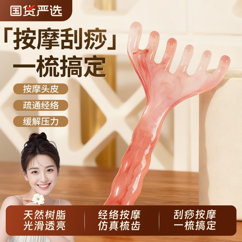 琥珀按摩梳头皮经络梳天然树脂头部头疗脱发脸部提拉刮痧神器疏通