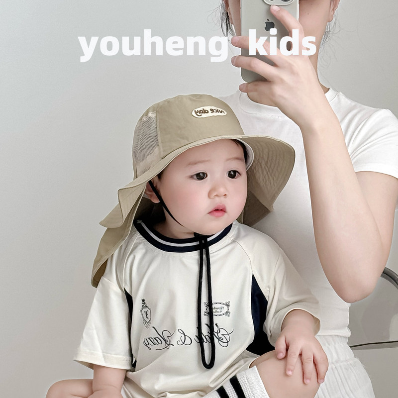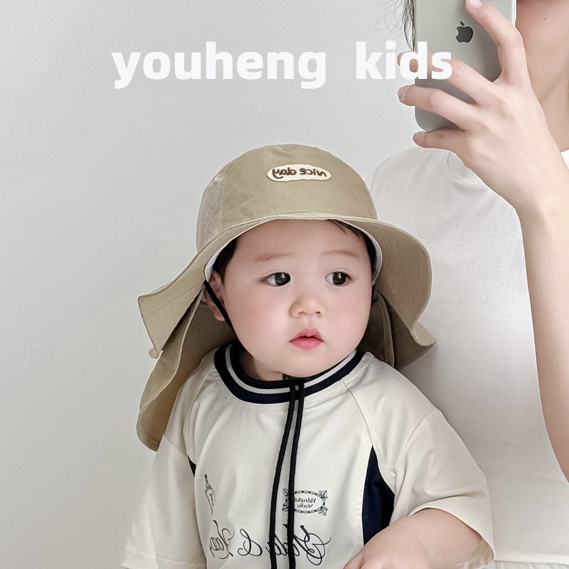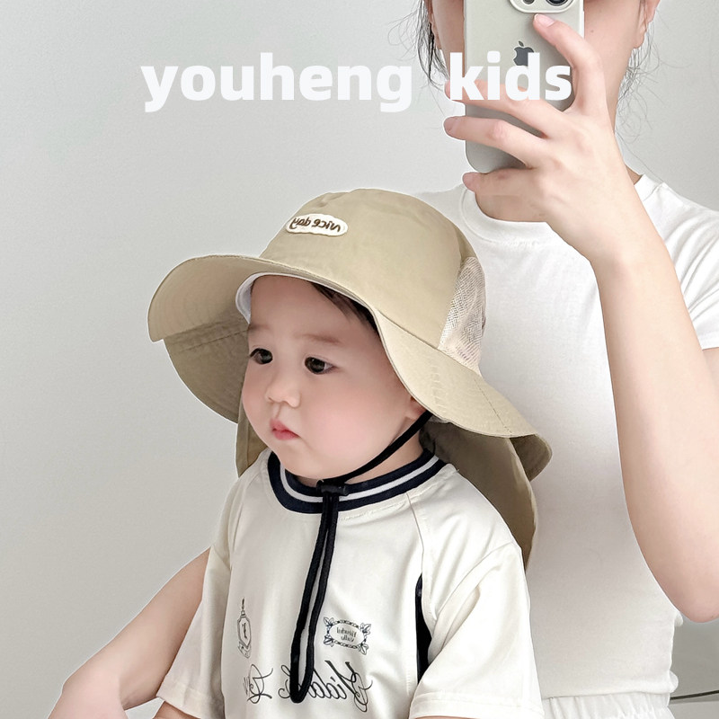 儿童防晒帽宝宝遮阳帽防紫外线男孩女童太阳帽大帽檐夏季渔夫帽子