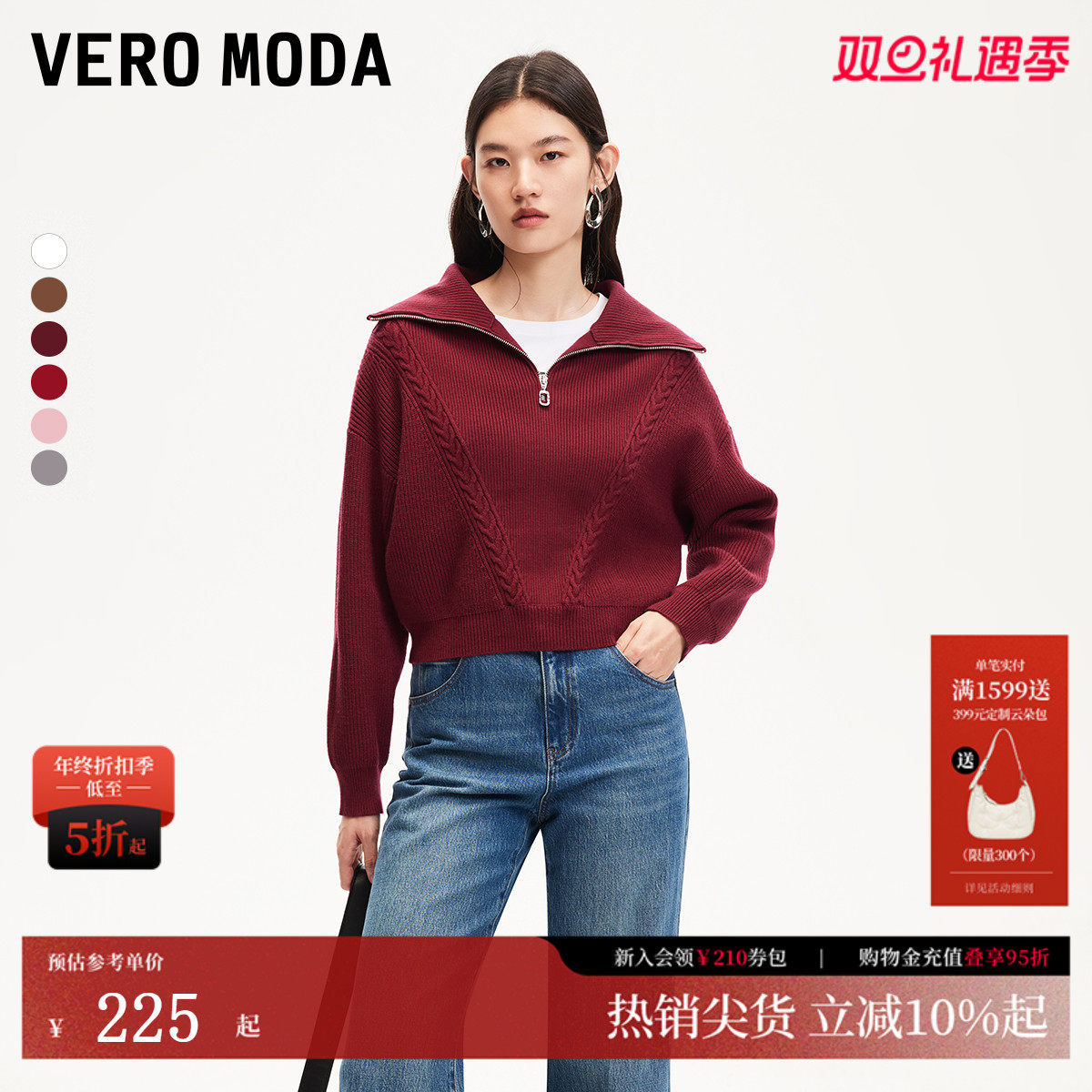 Vero Moda针织衫2025春季新款拉链纯色短款长袖立领毛衣325113061