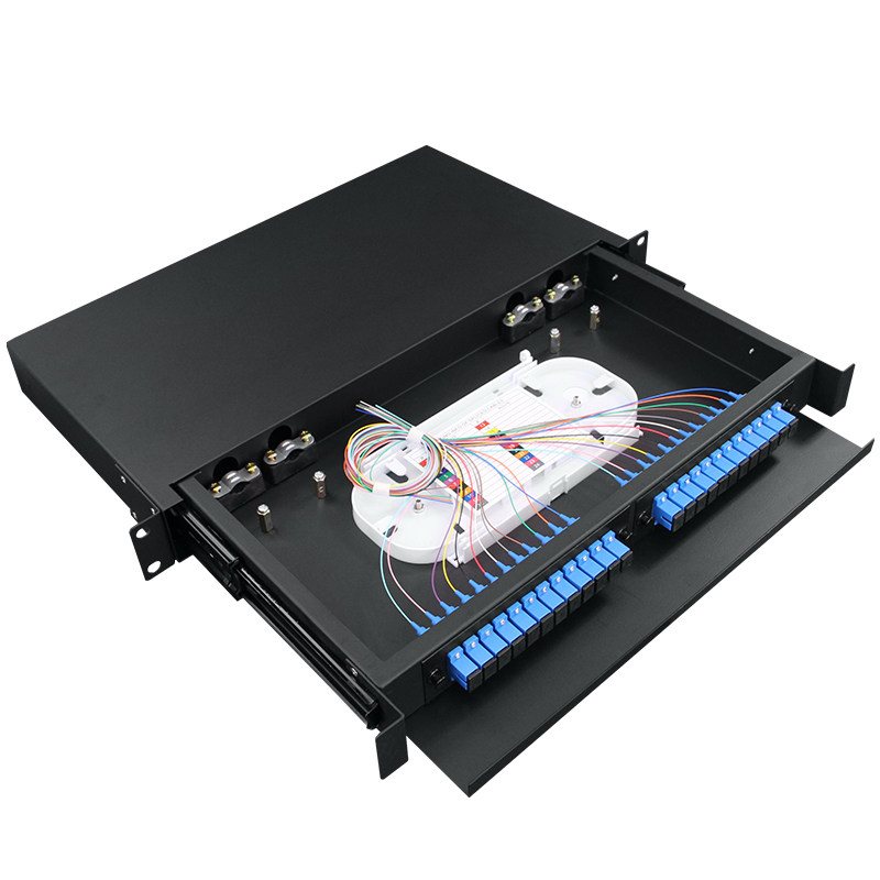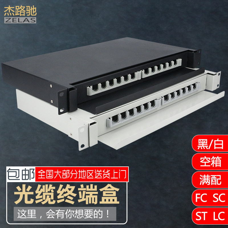 杰路驰 机架式抽拉箱式光纤终端盒12/24/48口芯加厚板材黑/白色空盒/满配电信级FC/SC/ST/LC odf光纤配线架