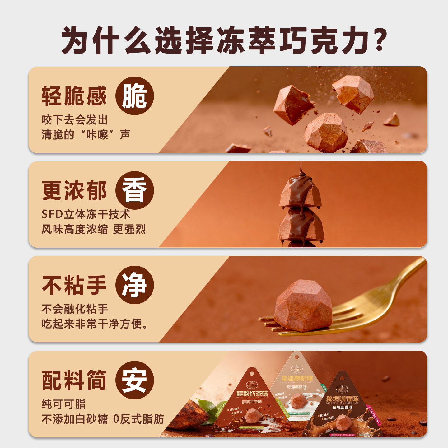 法布朗冻干巧克力袋装纯可可脂解馋办公室零食牛奶咖啡味黑巧克力