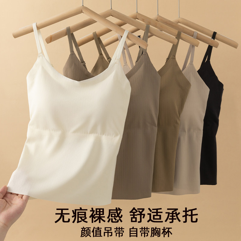 磨毛保暖背心女2025冬新款带胸垫一体无痕吊带打底内衣加绒加厚