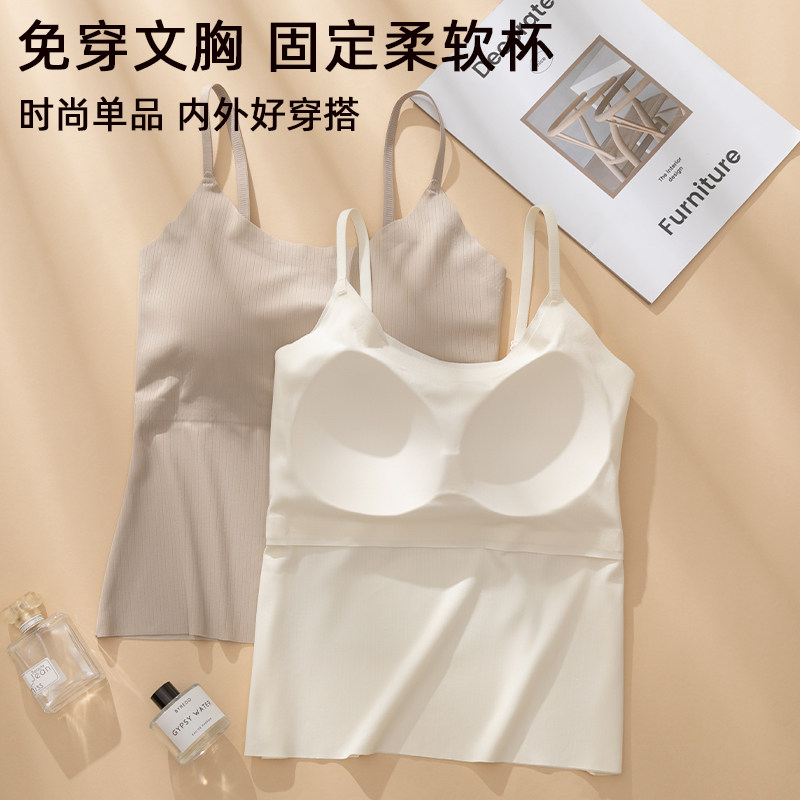 夏吊带带胸垫背心女美背内衣冰丝一体内搭无痕打底外穿可外穿文胸