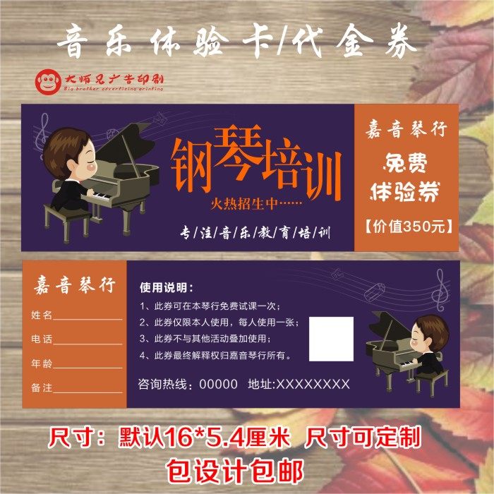 优选音乐钢琴吉他古筝民乐培训班体验卡试课卡代金券免费设计优惠