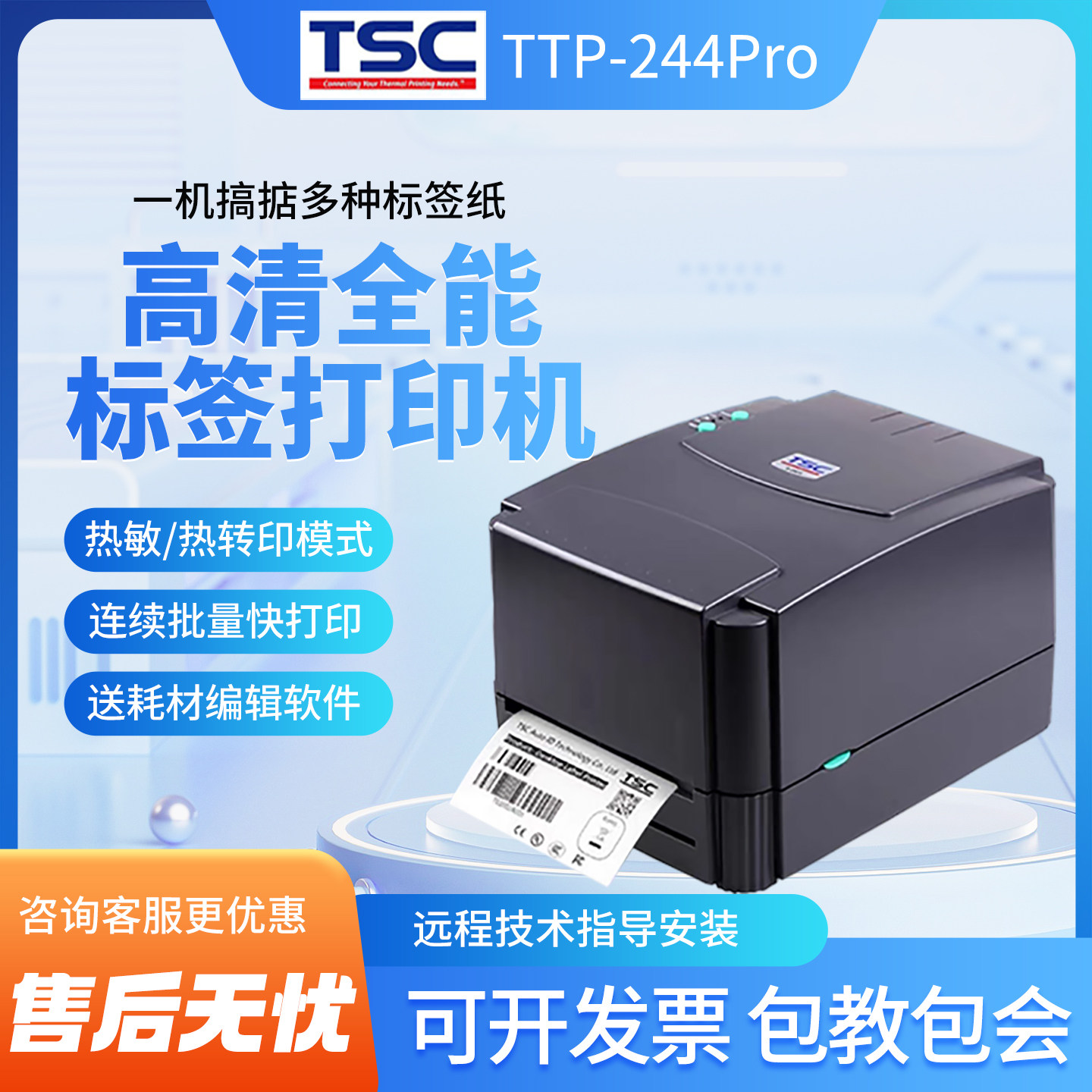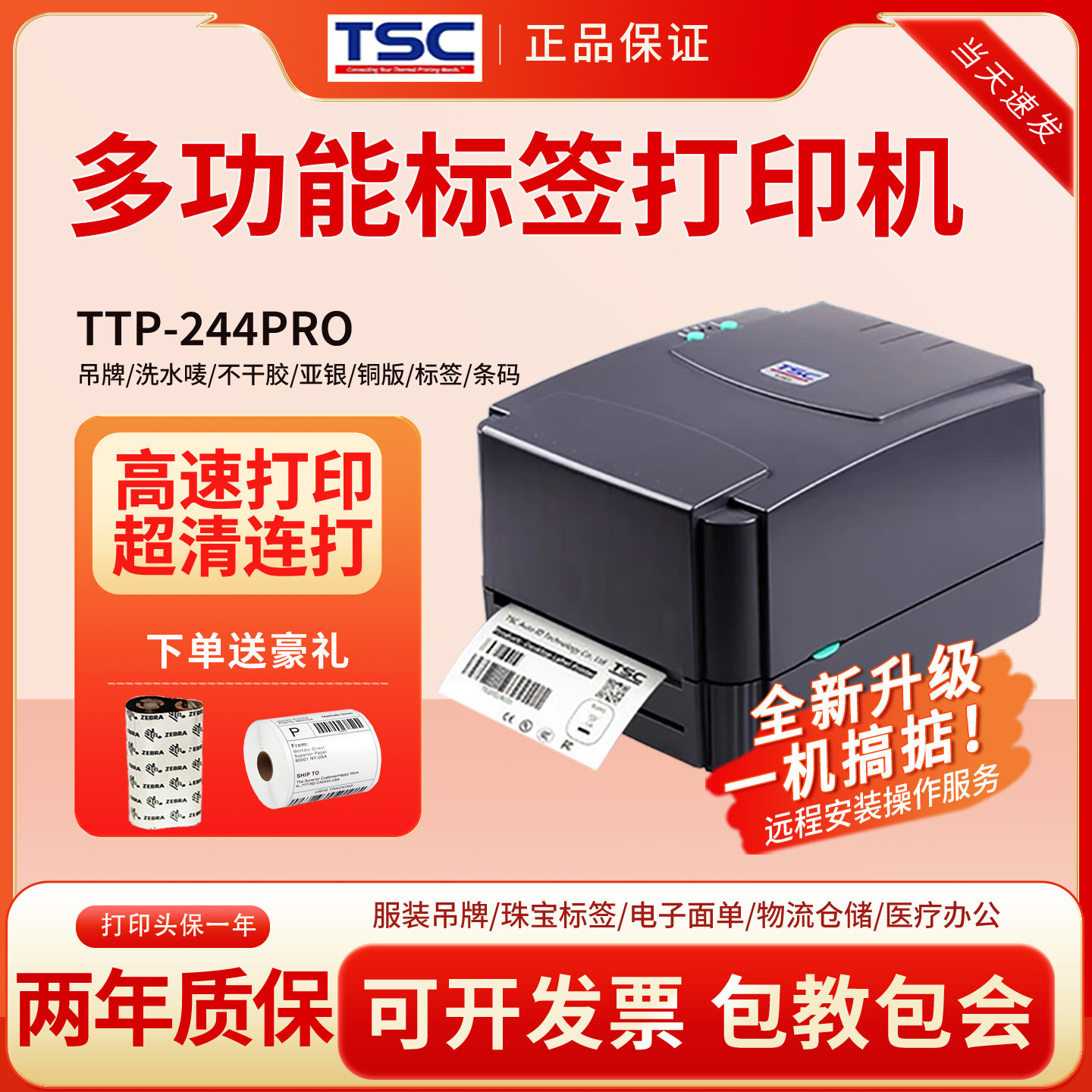TSC ttp-244pro/342标签打印机不干胶条码水洗唛吊牌热敏碳带小型
