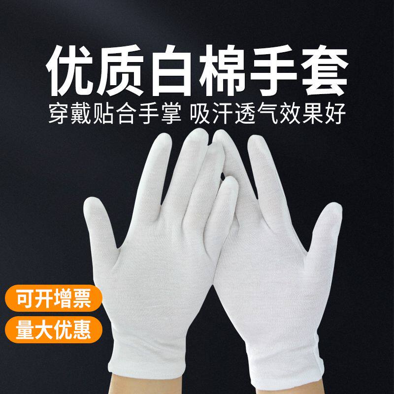 白手套纯棉礼仪薄款文玩盘珠布工作男女干活劳保耐磨开车夏季汗布