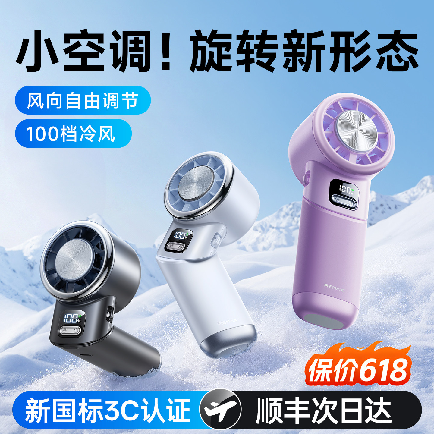 2026新款【制冷小空调】睿量手持小风扇小型冰敷超长续航迷你便携式随身折叠挂脖超静音户外降温神器充电风扇