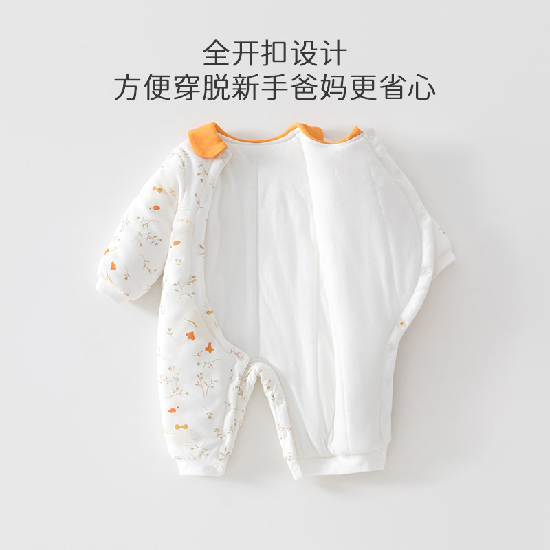 贝肽斯婴儿薄夹棉连体衣冬装外出新生幼儿宝宝衣服保暖空气棉睡衣