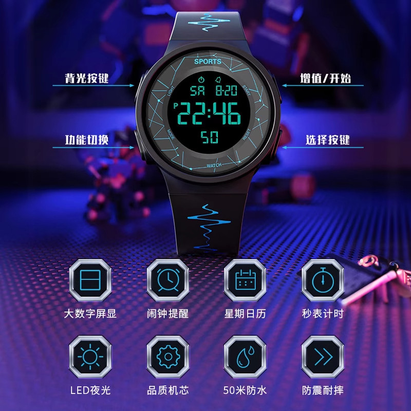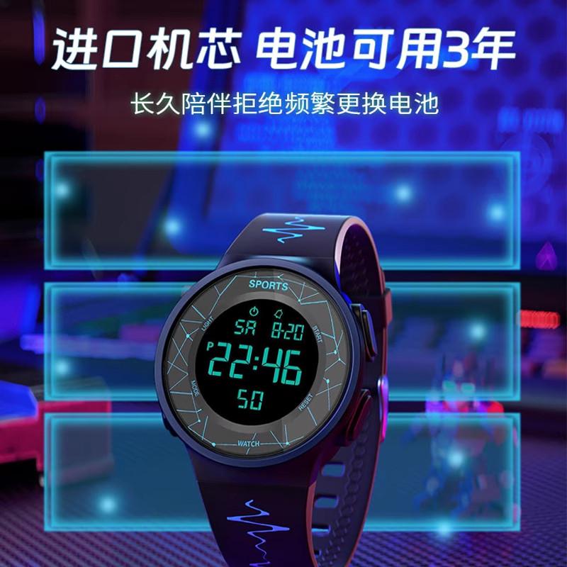 电子手表初中高中学生儿童防水款多功能智能运动游泳夜光计时显示