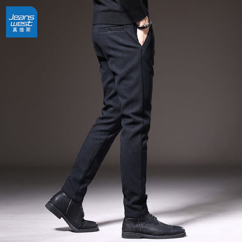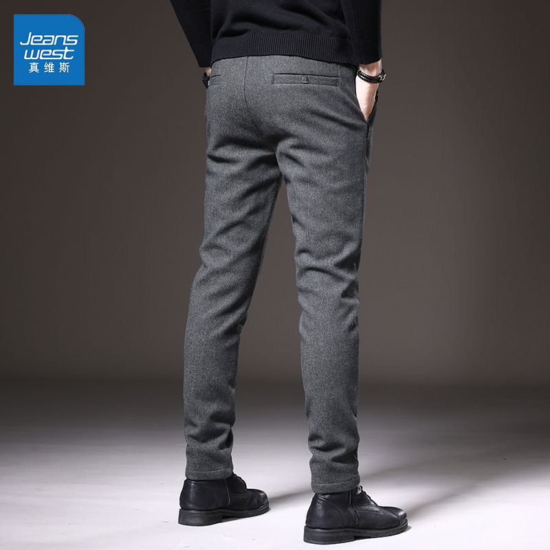 罗蒙加绒加厚男士休闲裤商务休闲秋冬季新款弹力直筒西裤秋冬款