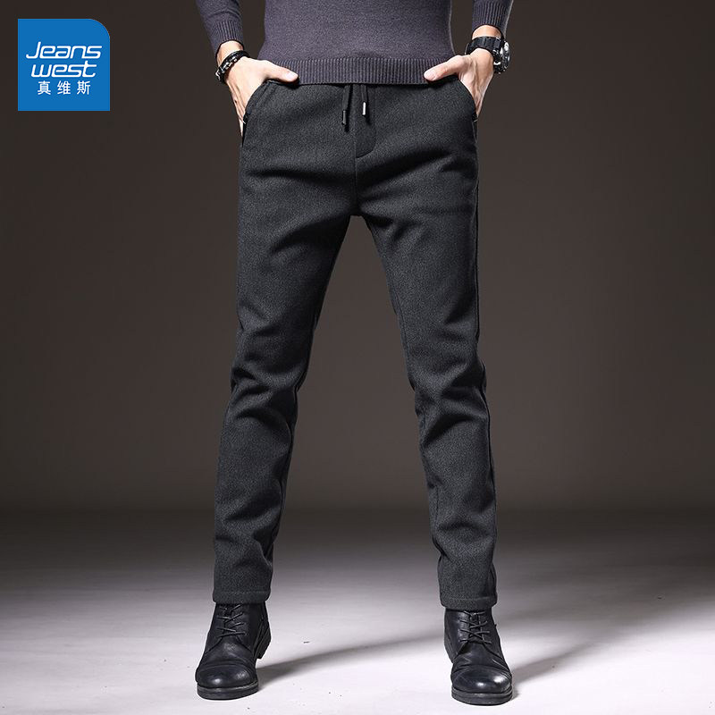 GR真维斯加绒休闲裤男2025秋冬新款直筒小脚弹力长裤中年商务西裤
