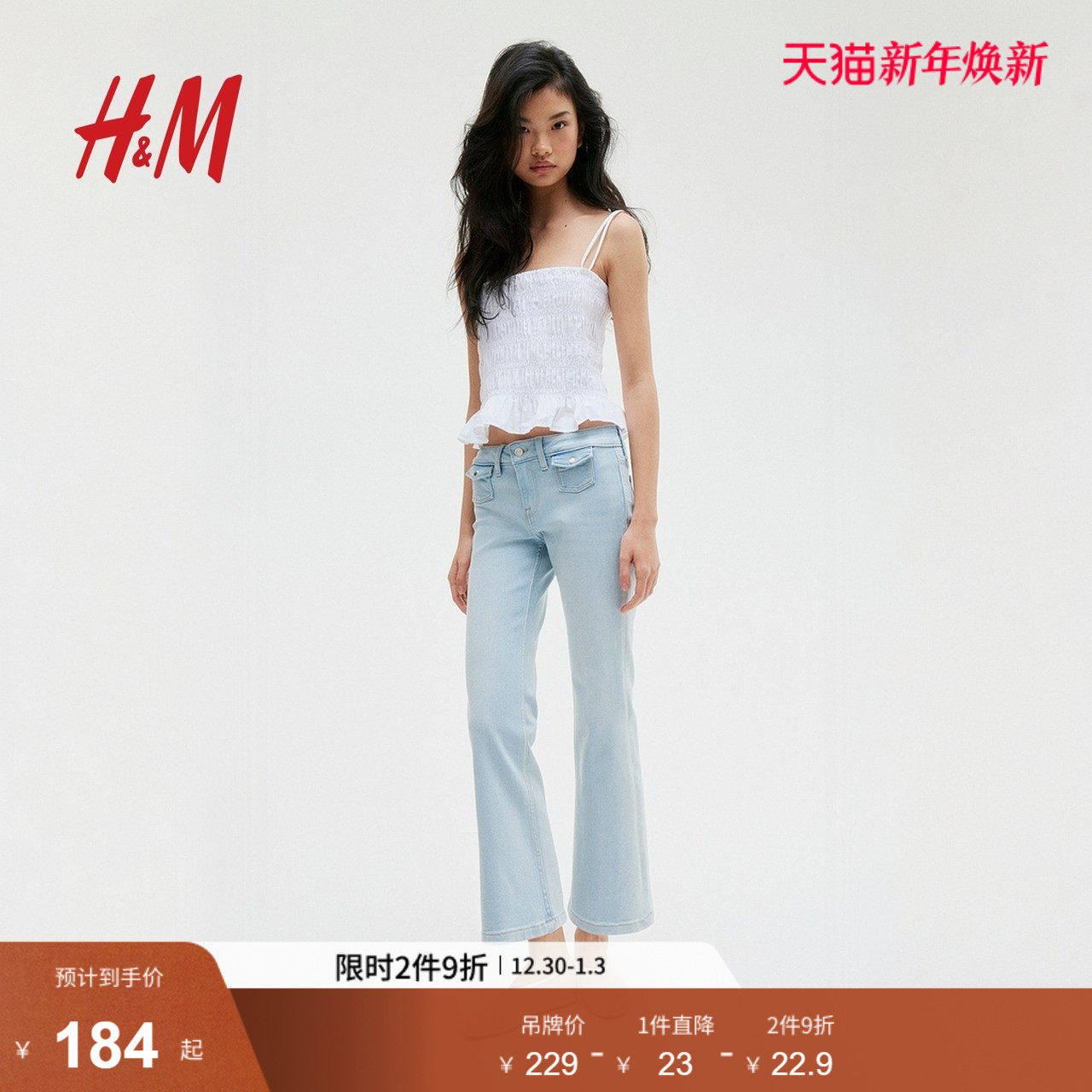 HM女装牛仔裤2025年新款微紧身牛仔裤低腰微喇叭设计长裤1263677