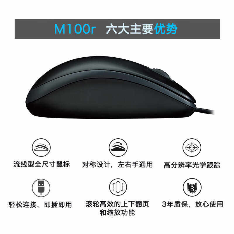M100R全尺寸usb有线鼠标台式电脑专用笔记本电脑专用办公鼠标