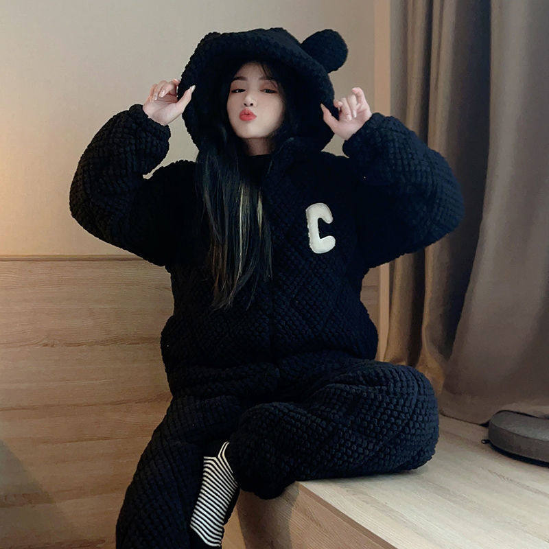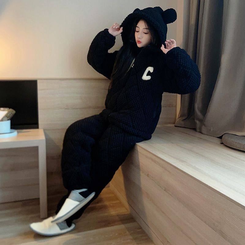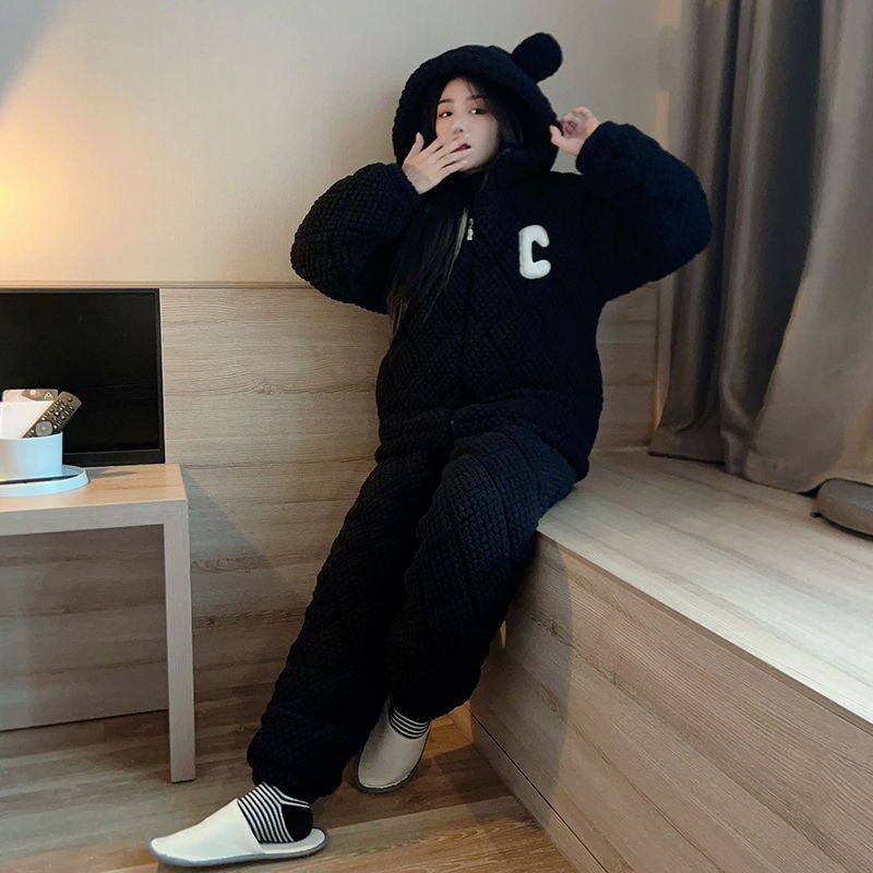 睡衣女冬季珊瑚绒夹棉三层加厚加绒法兰绒冬天休闲冬款家居服套装