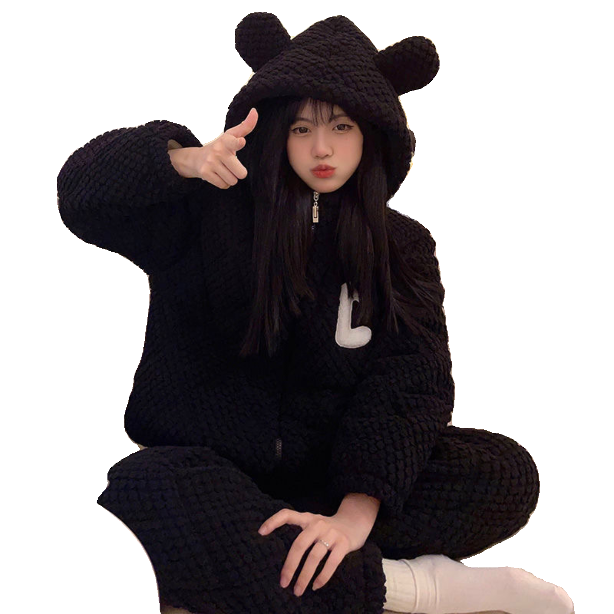 肖战同款猫人暖绒绒家居服半边绒男女2025新款冬季睡衣可外穿加厚