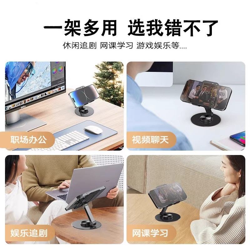 全金属手机支架桌面懒人可360度旋转升降ipad平板电脑支撑架直播视频追剧多功能通用碳素钢架子便携折叠