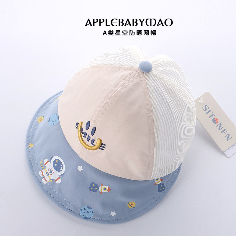 夏季星童坊星空防晒帽男宝宝鸭舌帽儿童遮阳帽大帽檐小孩百搭凉帽