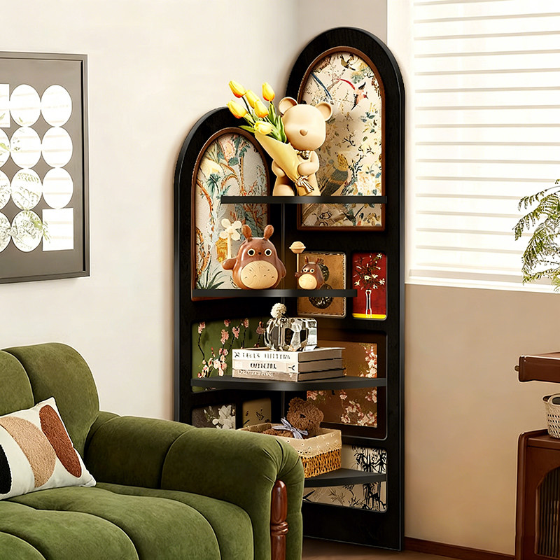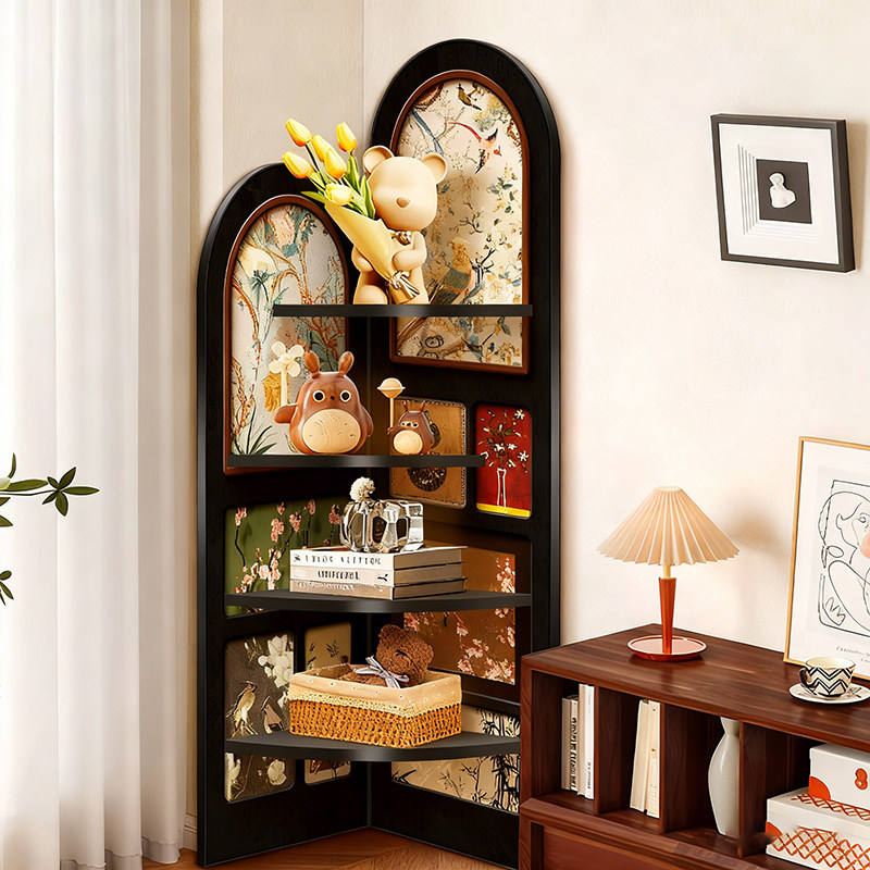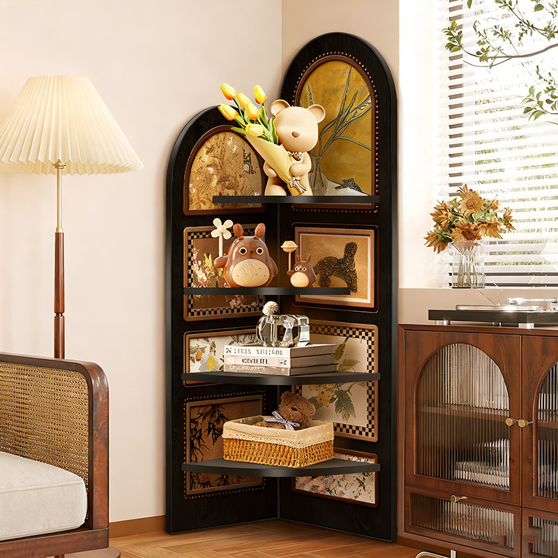 中古风客厅转角收纳柜书架落地三角置物架墙角卧室装饰摆件角柜