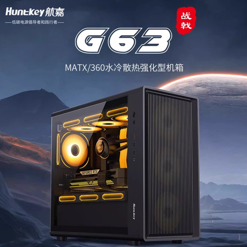 航嘉G63战戟机箱电脑台式机MATX网孔侧透240/360水冷游戏机箱