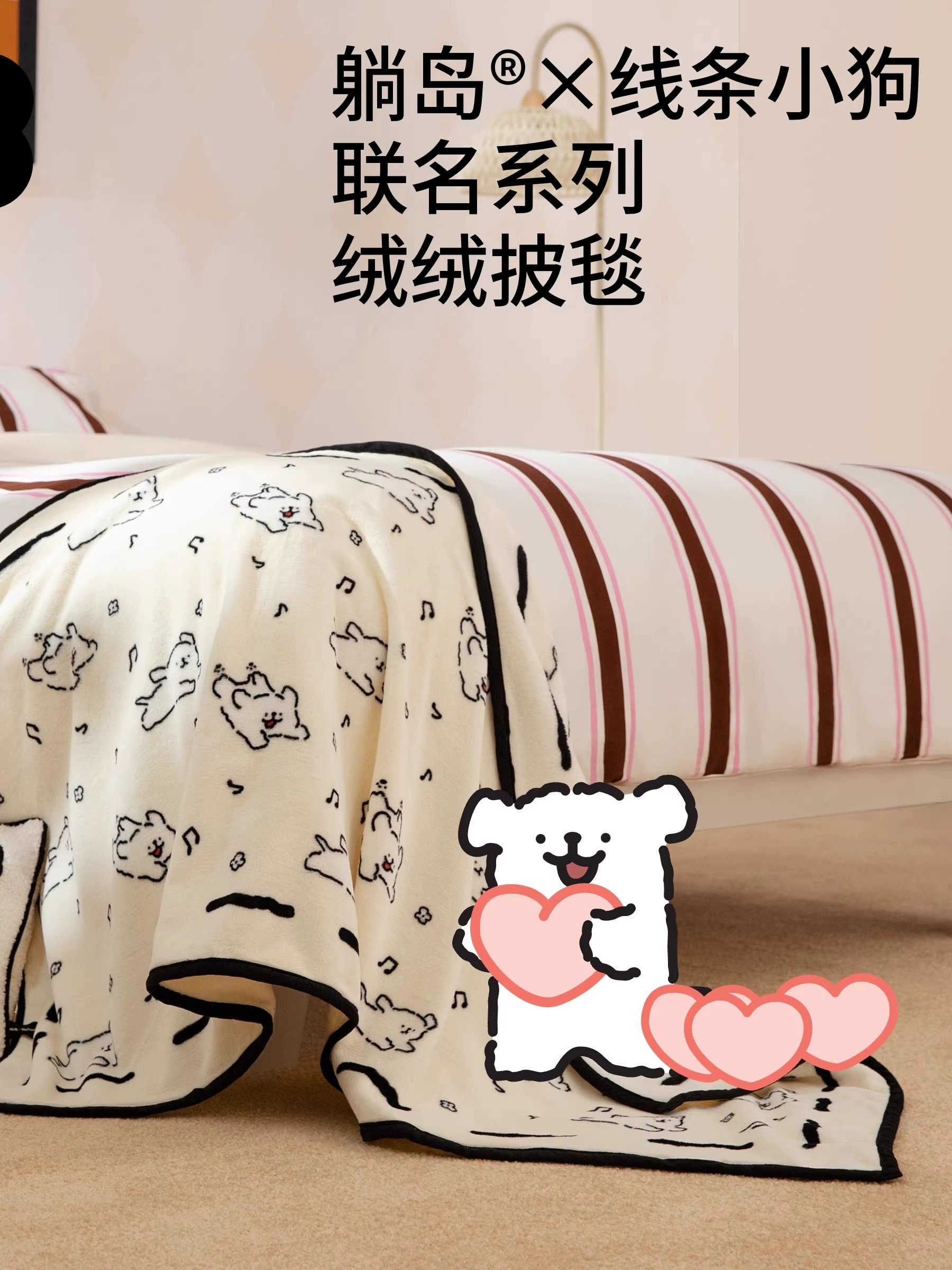 躺岛X线条小狗联名款双面珊瑚绒毛毯办公室午睡披肩毯沙发盖披毯