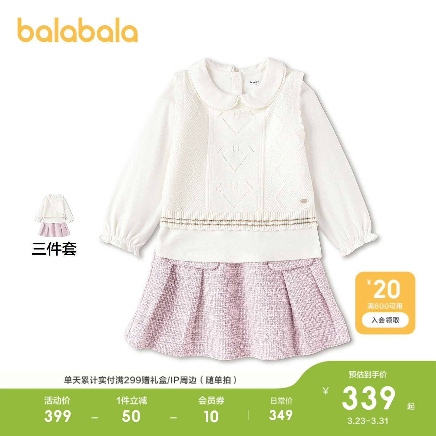 【商场同款】巴拉巴拉儿童套装女童2026新款春秋小香风时尚衣服潮