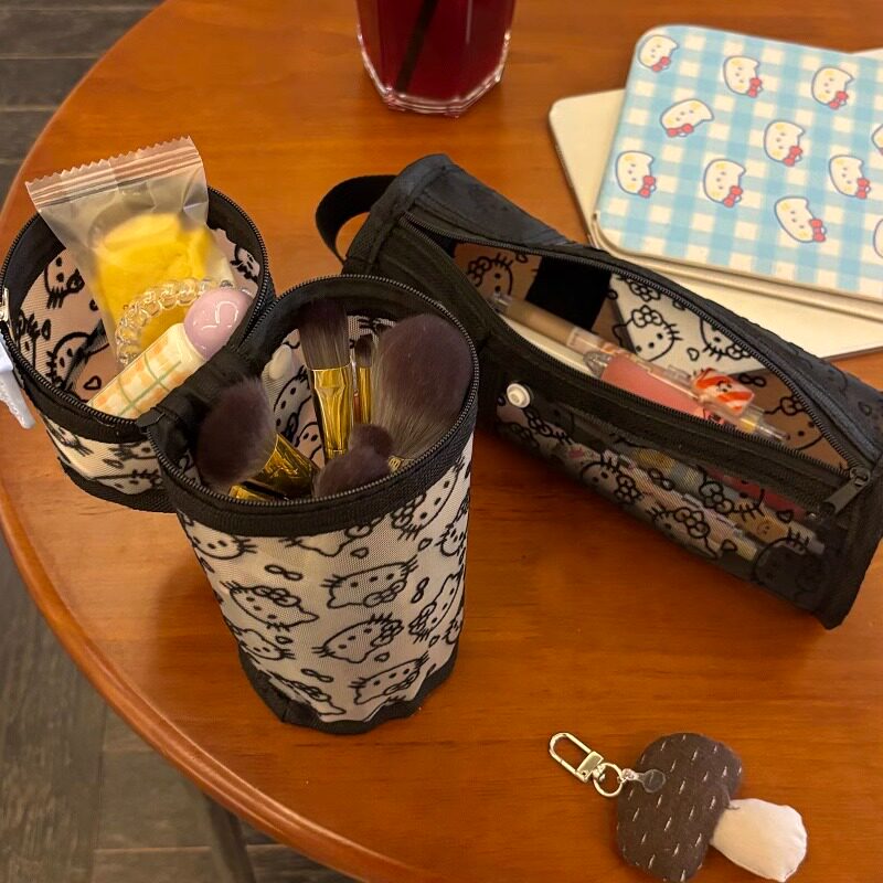 多用款大容量kitty网纱便携水桶笔袋化妆包刷包手提可站立耐脏