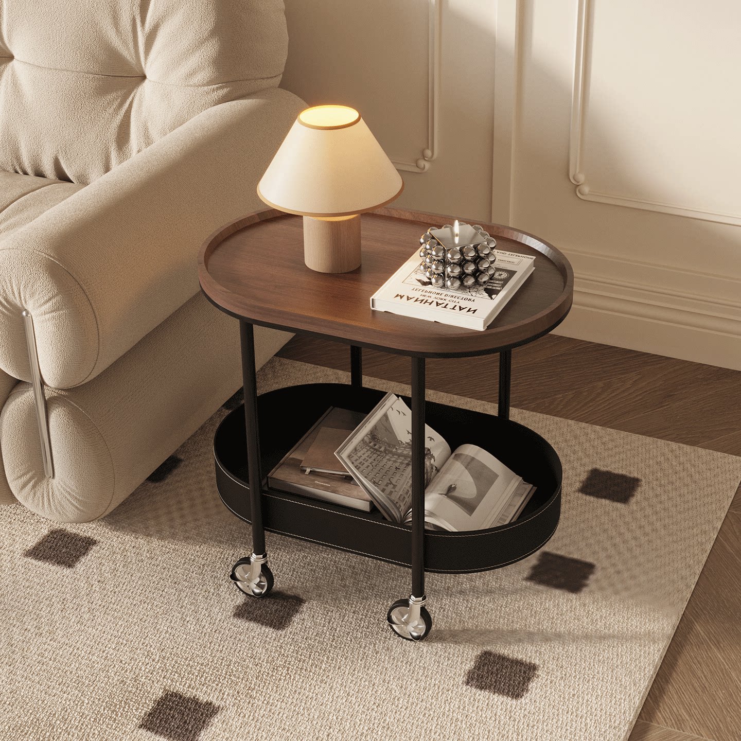 零食小推车中古风客厅沙发旁零食收纳架可移动玩具收纳架储物柜